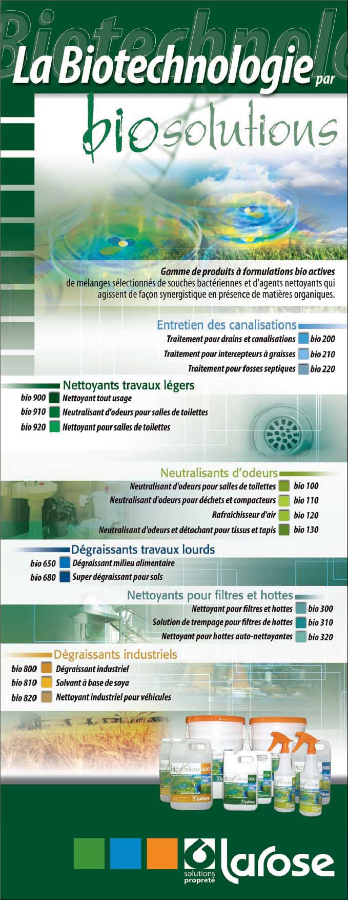 Toujours à l'affût des derniers développements technologiques en matière de santé, sécurité et salubrité. Larose et Fils Ltée est heureux d'introduire ENVIRO SOLUTIONS: